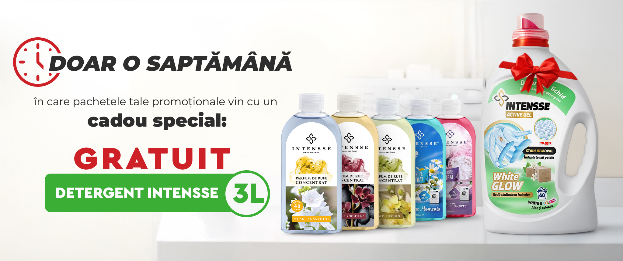✔️ CADOU exclusiv: detergentul INTENSSE 3L pentru haine impecabile